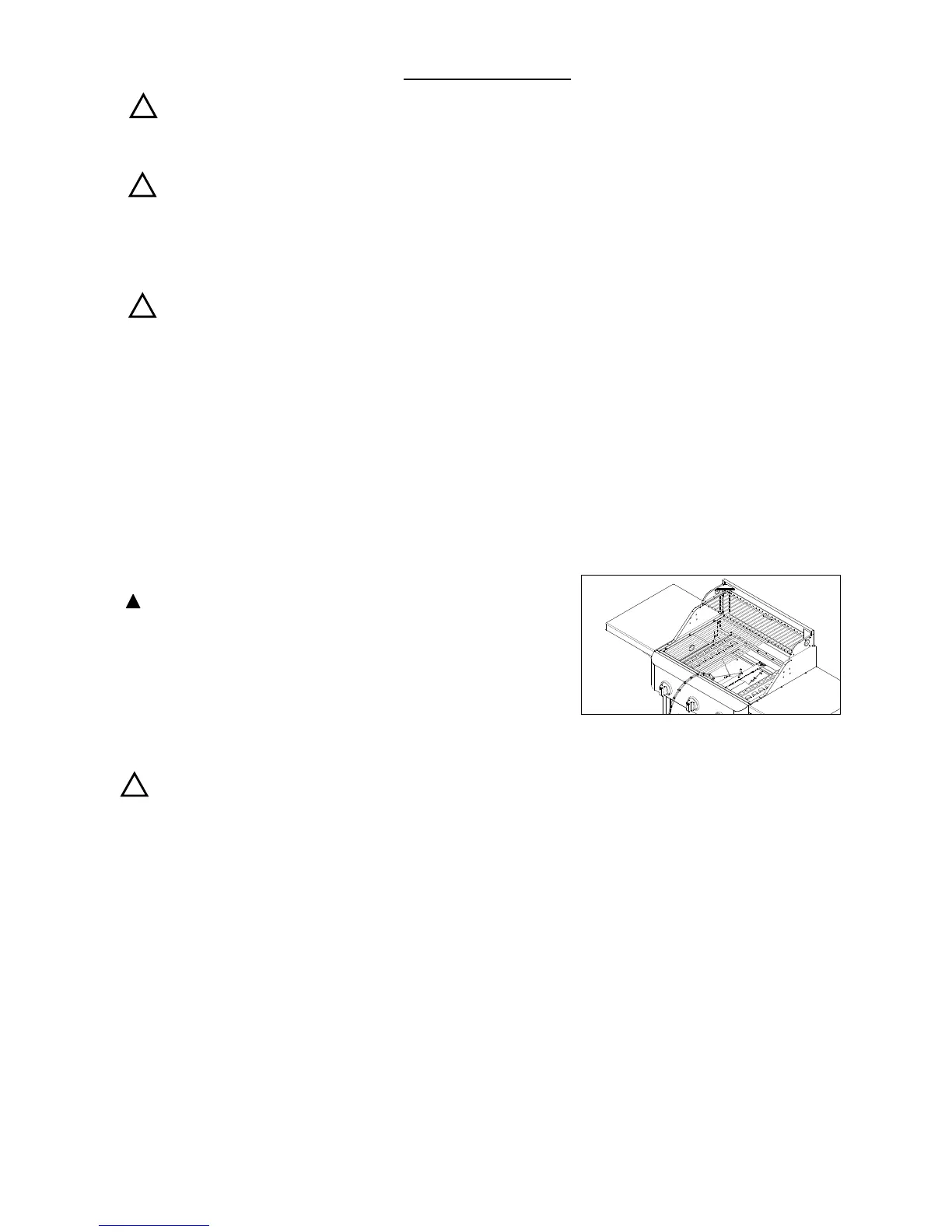 Never stand with your head directly over the grill when preparing to light the main burners, to prevent possible