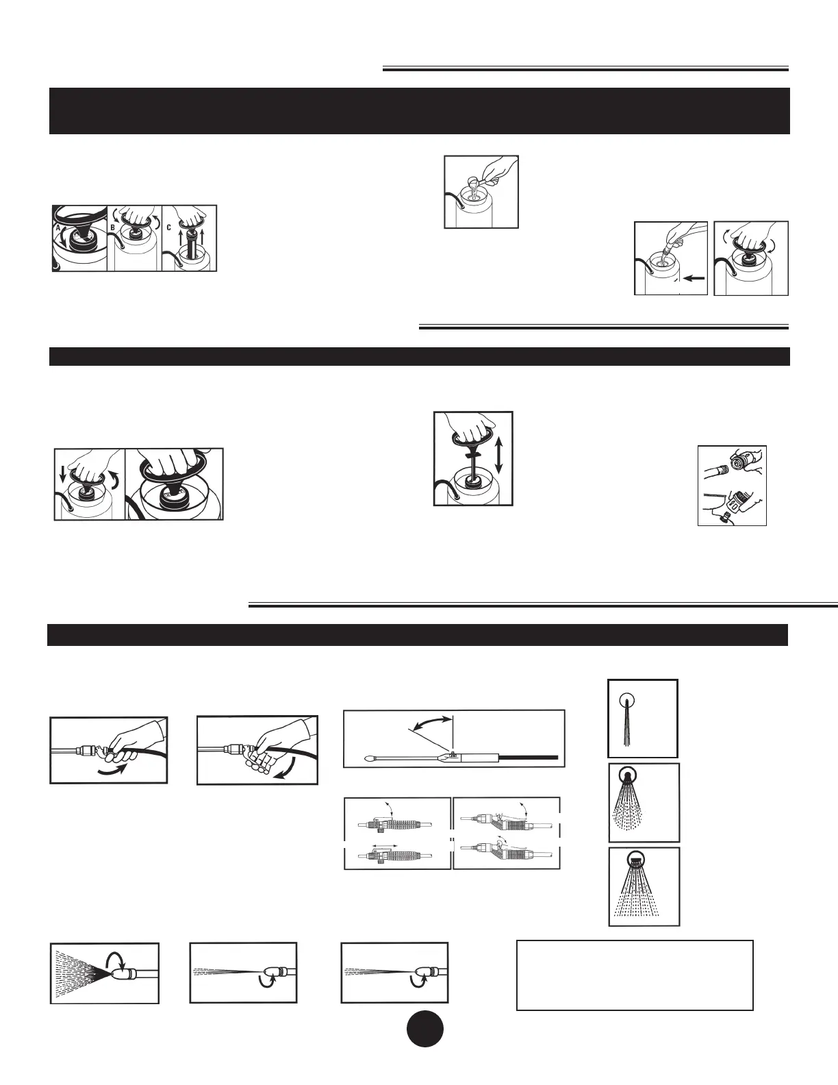Serrer la poignée pour pulvériser. Relâcher la poignée pour arrêter.