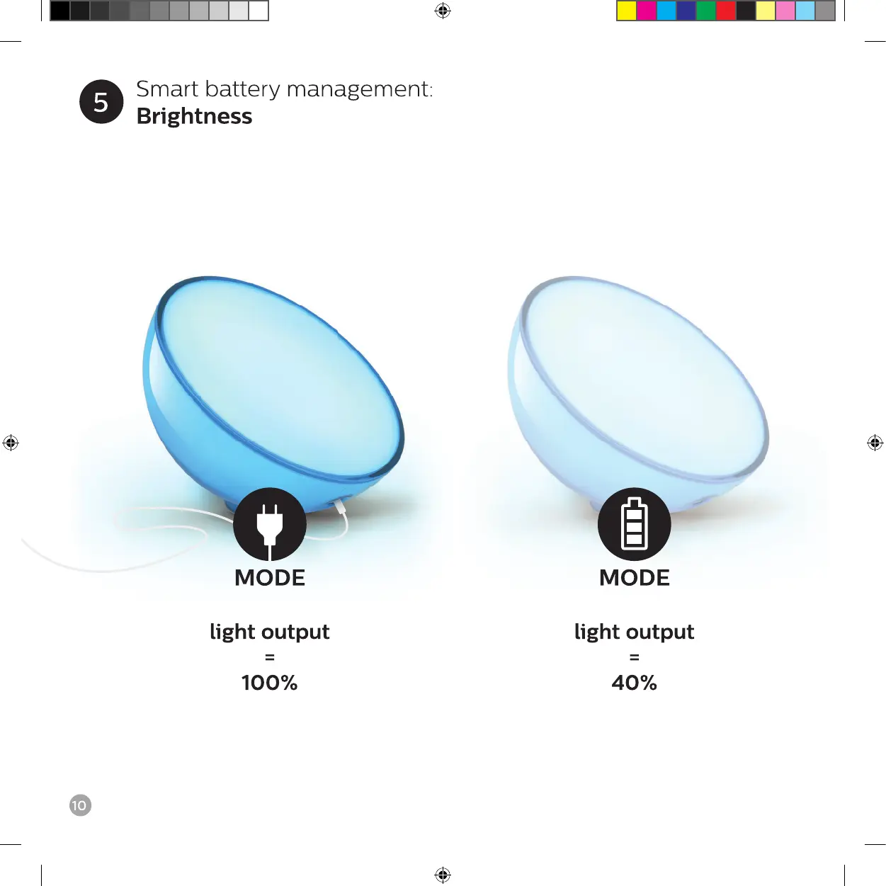 HUE Go - Smart Battery Management; Brightness Adjustment