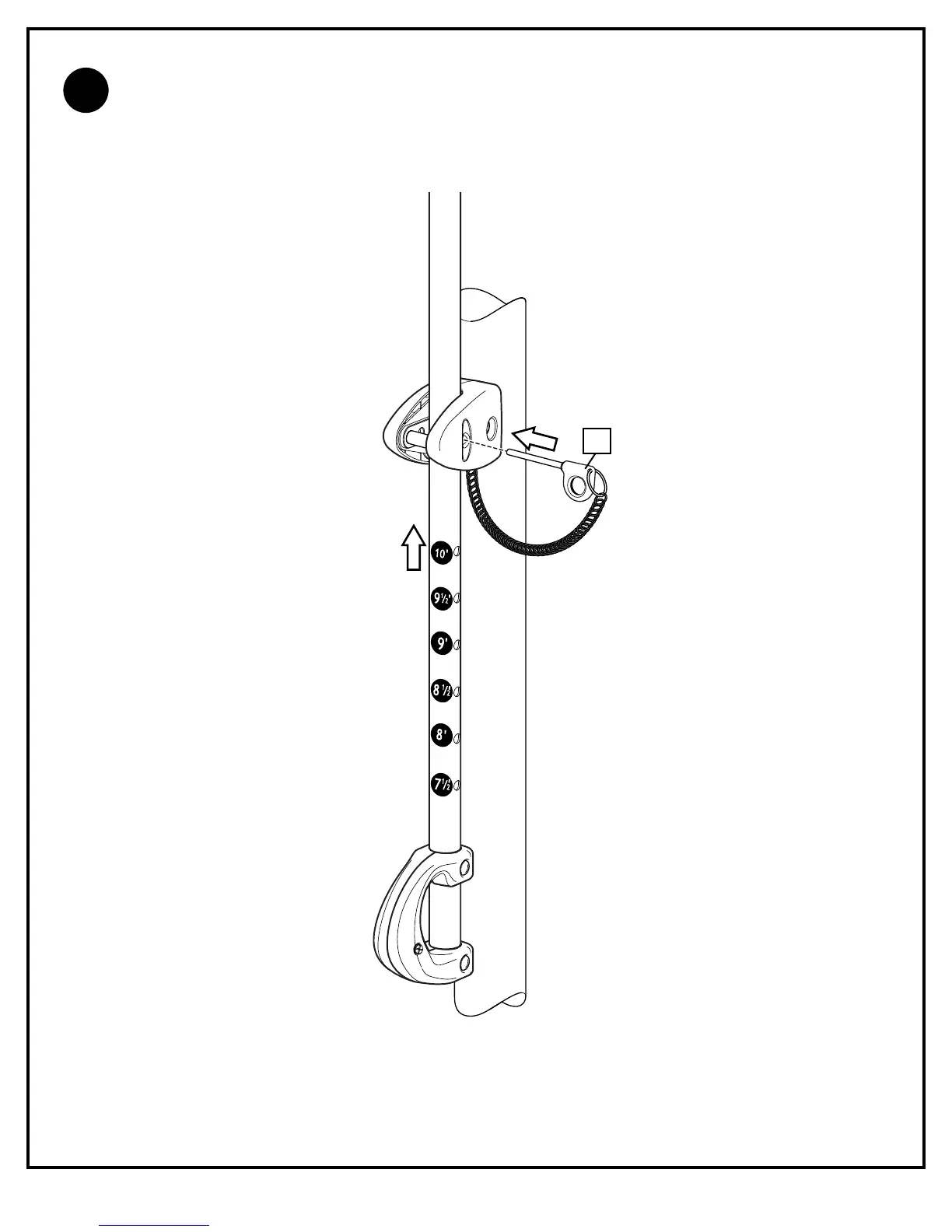 shown. Lock pole assembly in place at the 10’ (3.05 m)