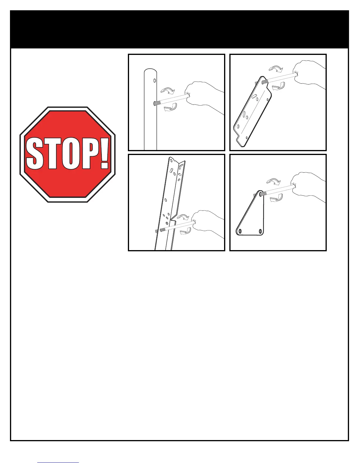 ajustés (serrés). À titre d'essai, insérez les gros boulons dans les gros trous des tubes du système élévateur, des supports