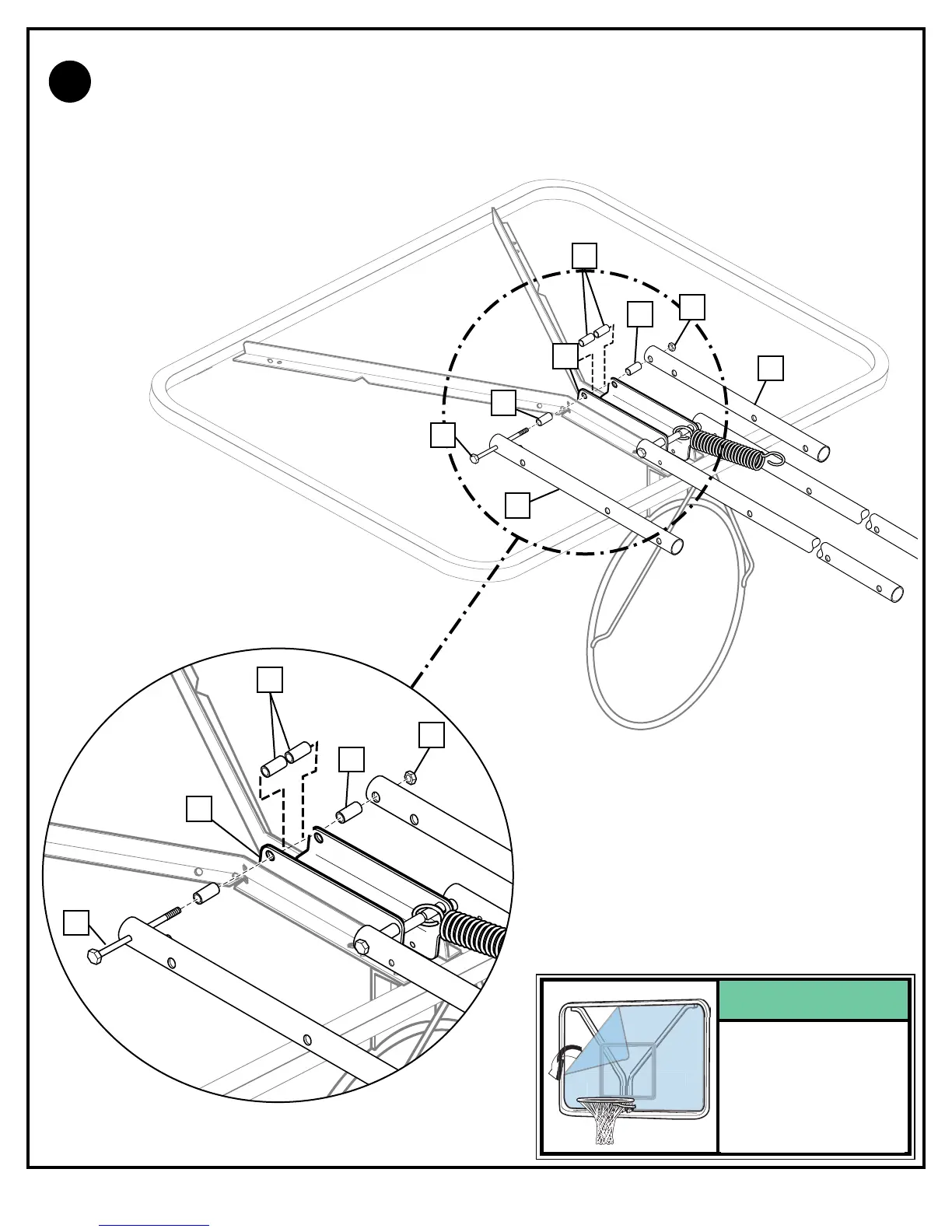 Attach upper elevator tubes (35) to backboard support brackets (27) using