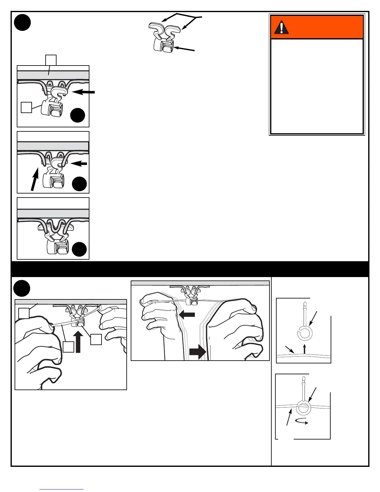 Einen Arm des Clips wie gezeigt in die Spirale einsetzen. Den Hauptteil des