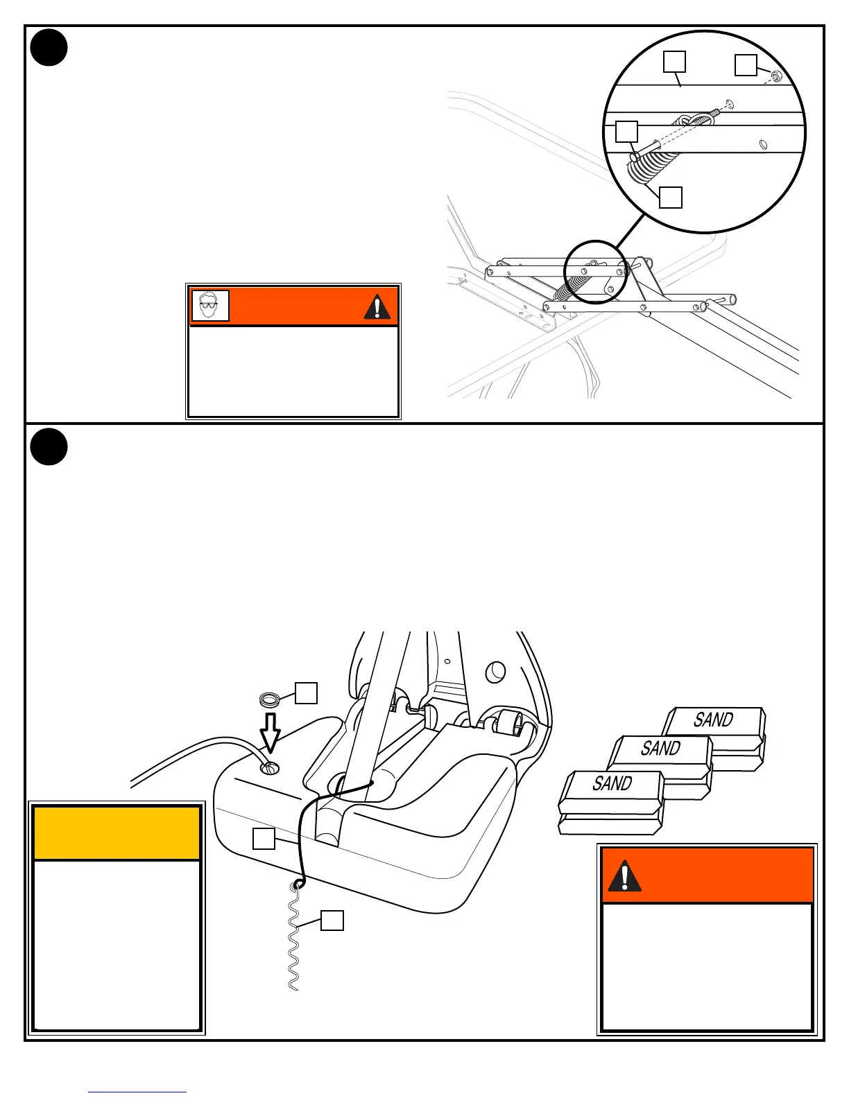 (ca. 128 kg [280 lbs]) füllen und den Tankdeckel (41) aufschnappen lassen. Den Aufbau mit dem Seil (44) und dem