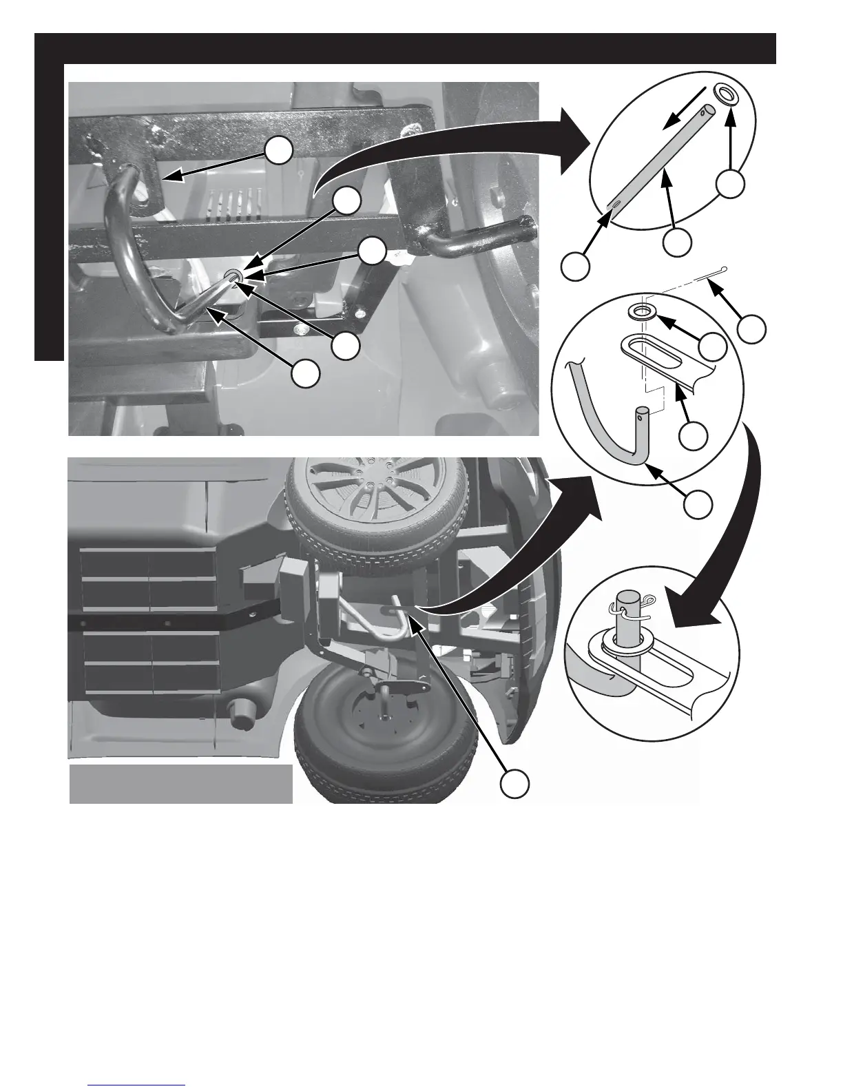 4. Insert the short end of the Steering Rod into slotted Hole (B) as shown.