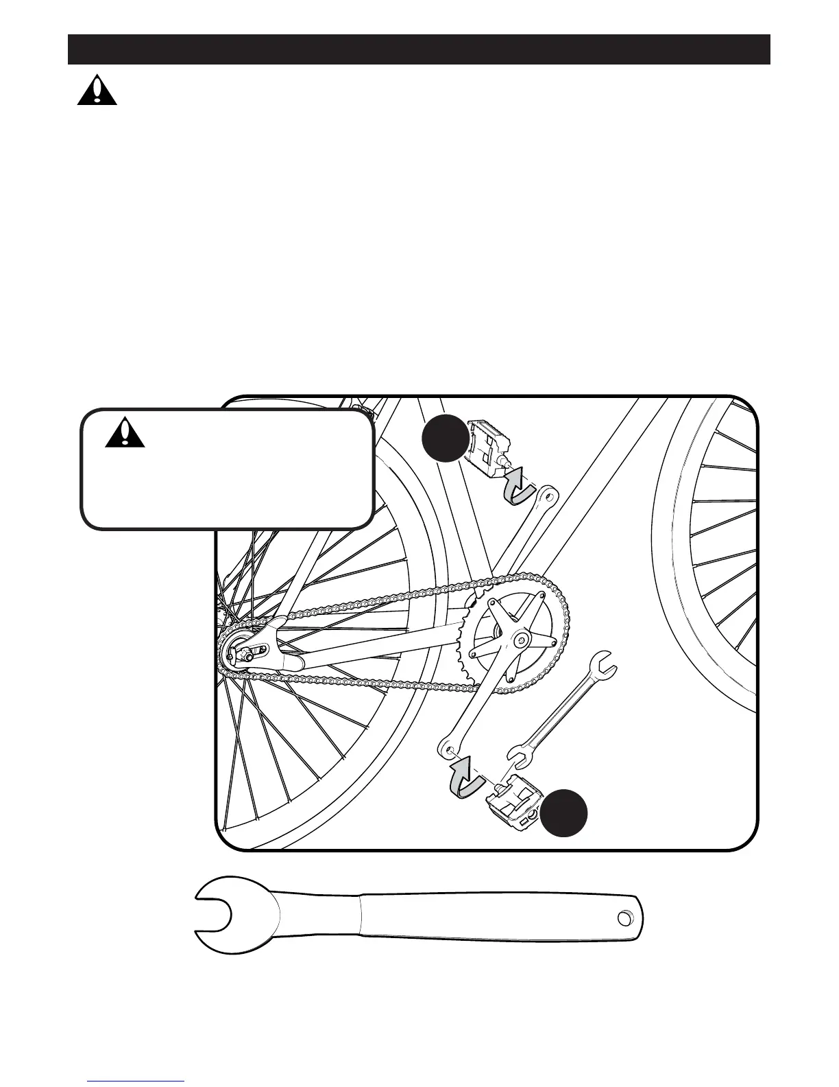 Note: A Pedal Wrench is preferred for attaching Pedals. An open-end