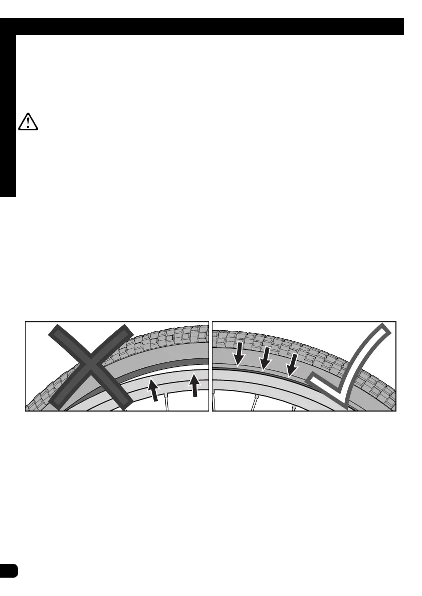 seated correctly, release air from the inner tube until you can push the bead of the tire into