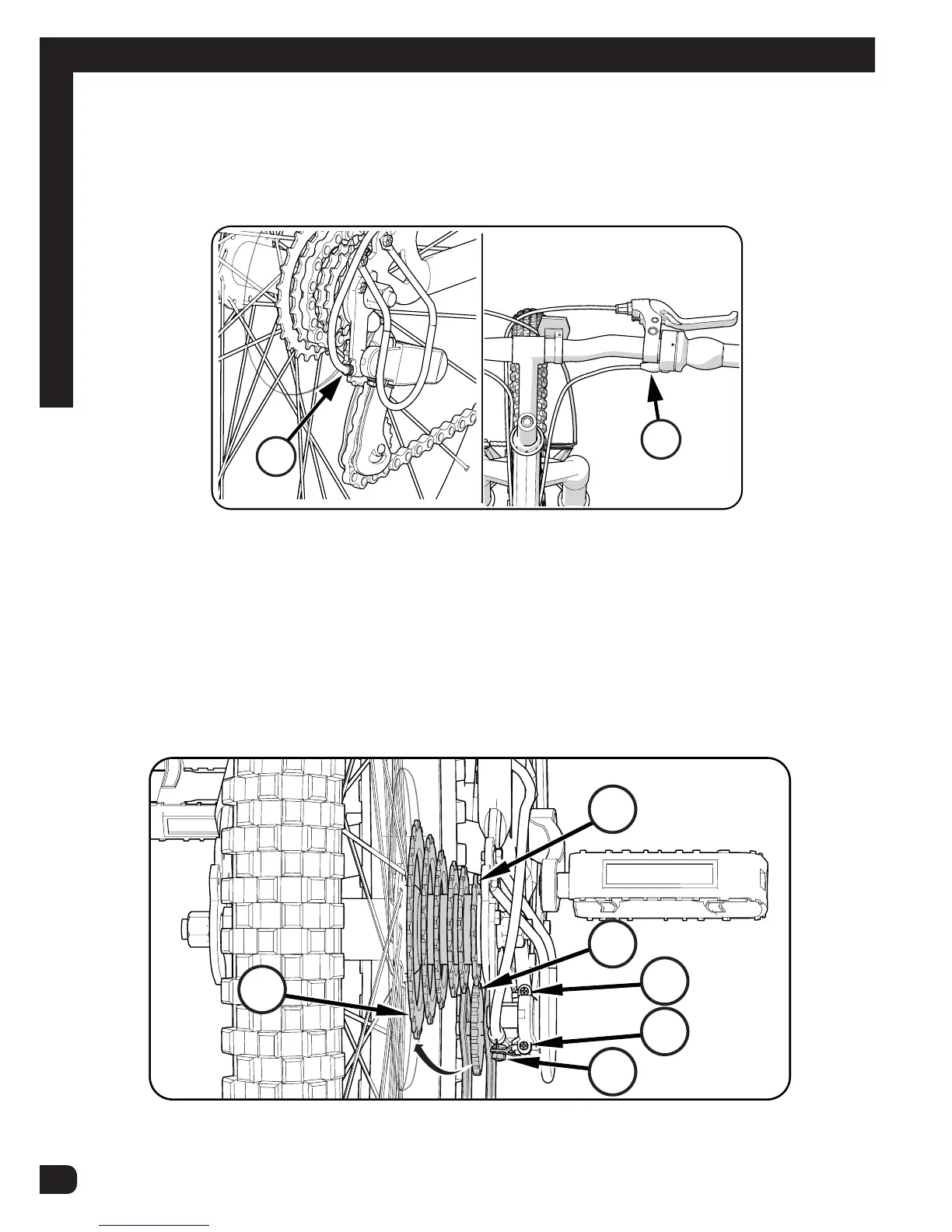 outside edge of the smallest rear Sprocket (E) (fi g 22).