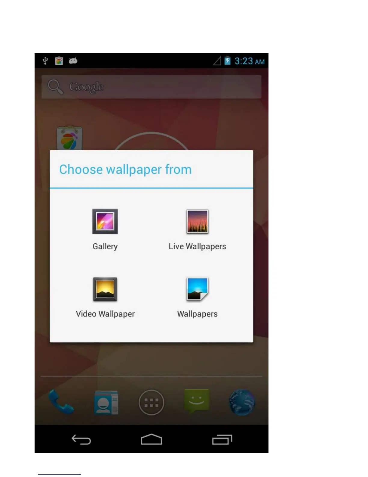 and then choose the wallpaper. The gallery program will allow you to assign any image on the tablet as wallpaper.