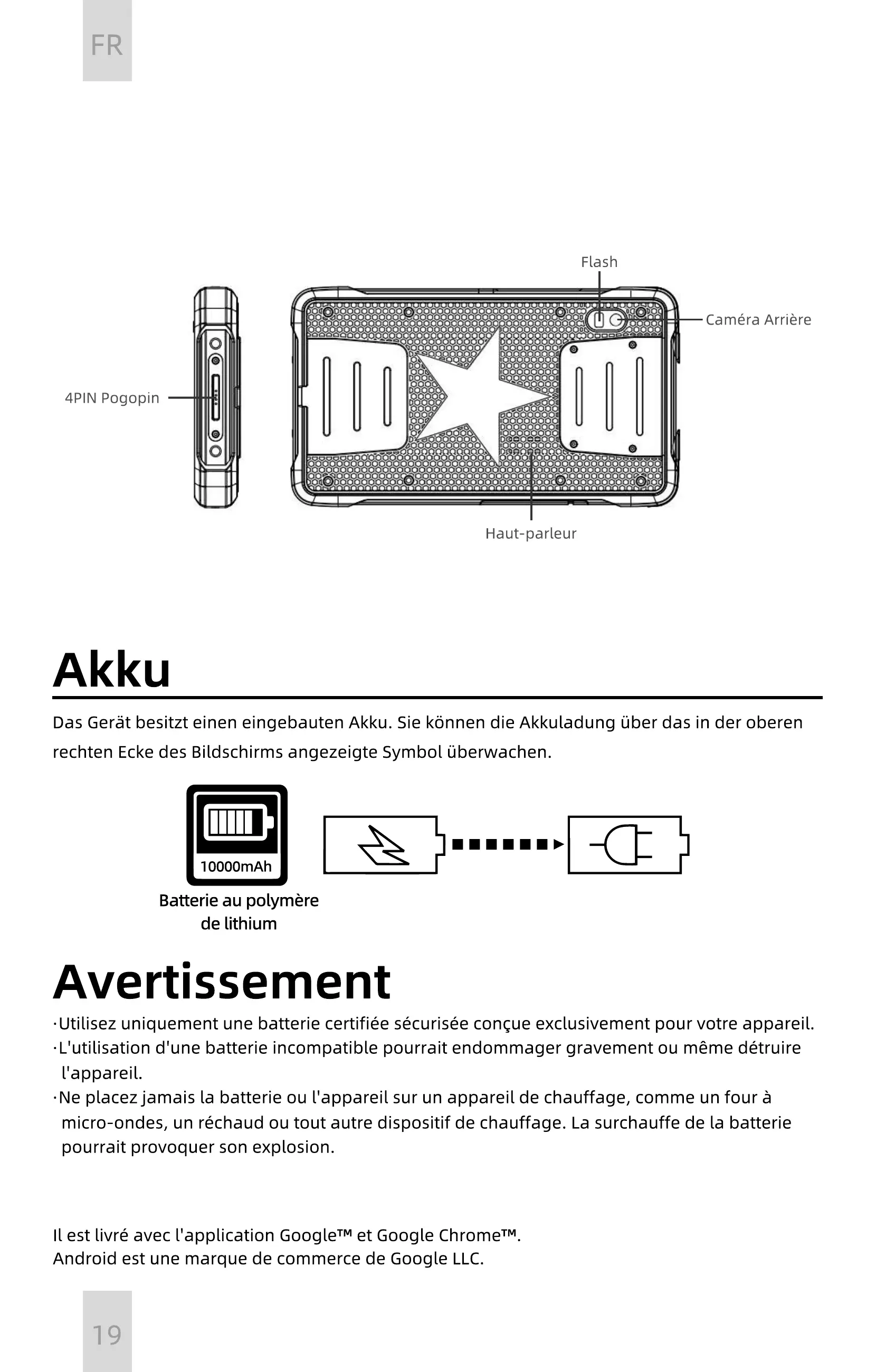Utilisez uniquement une batterie certifiée sécurisée conçue exclusivement pour votre appareil.