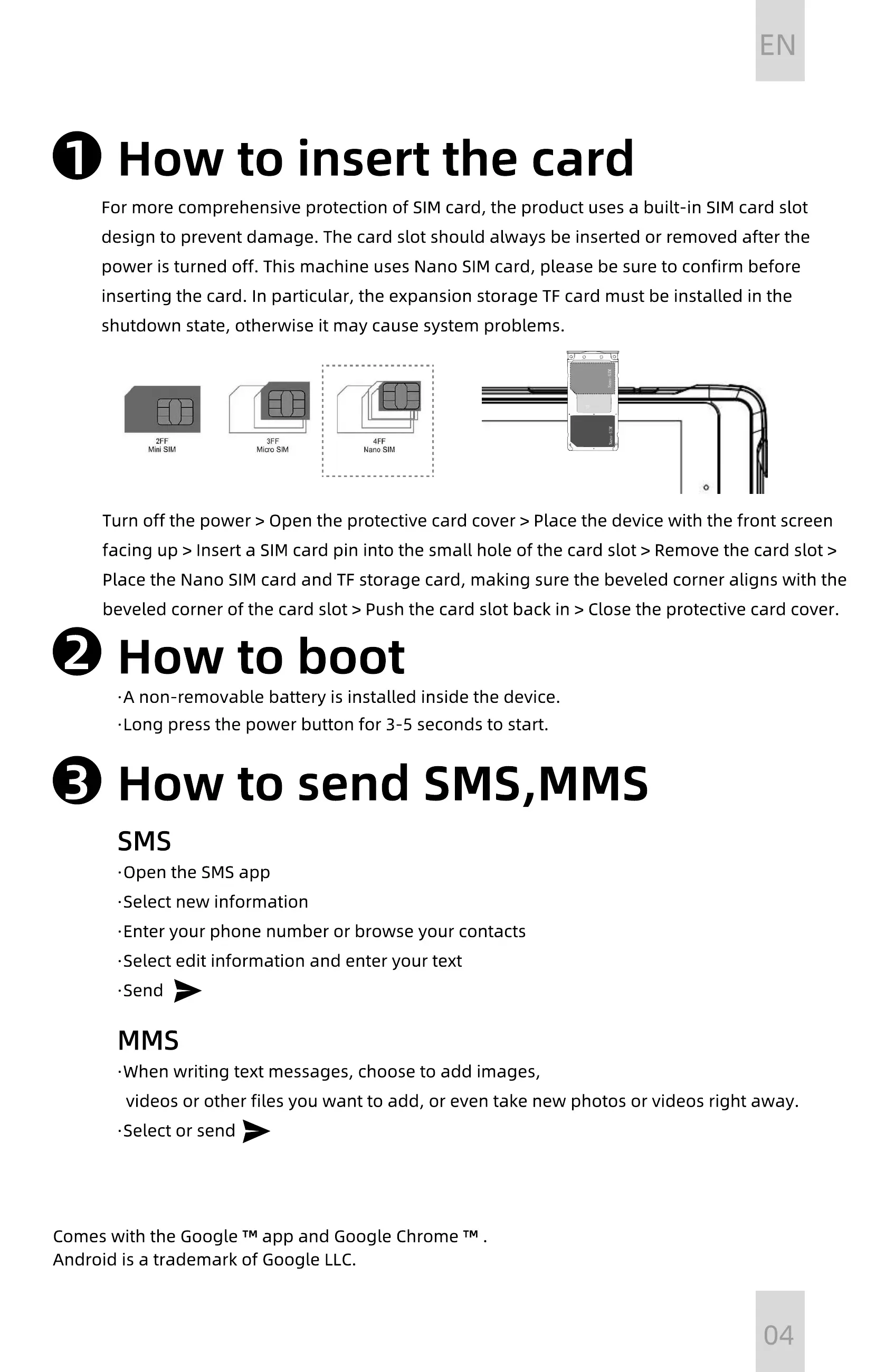 power is turned off. This machine uses Nano SIM card, please be sure to confirm before