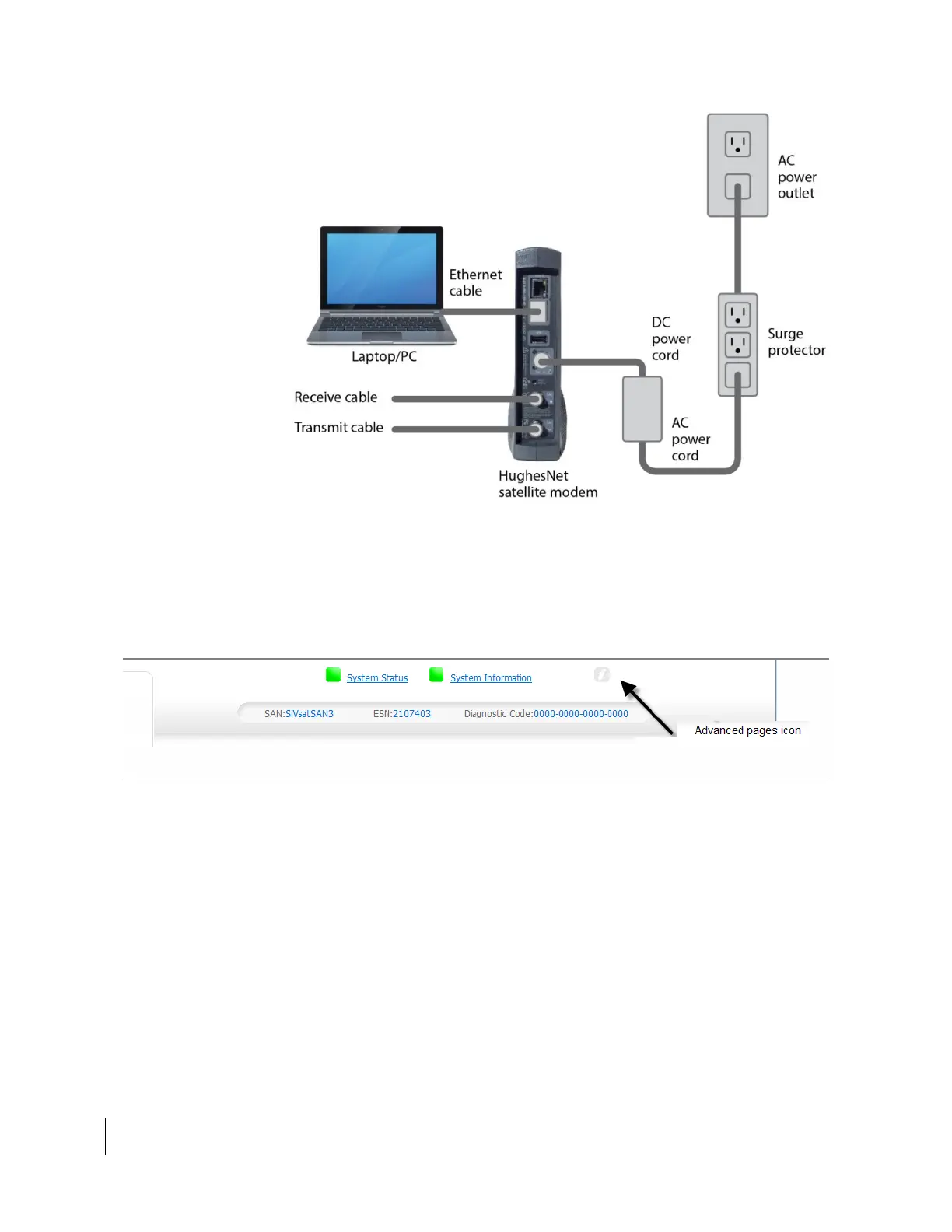 Figure 11: Connecting the installer laptop to the satellite modem (HT1300)