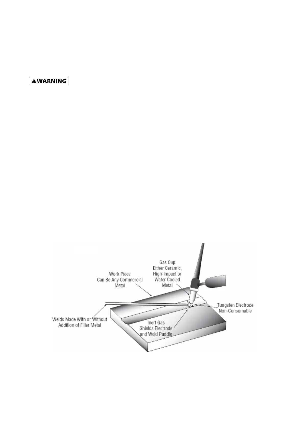 tungsten (non-consumable) electrode and the work piece. Shielding is obtained from a welding grade