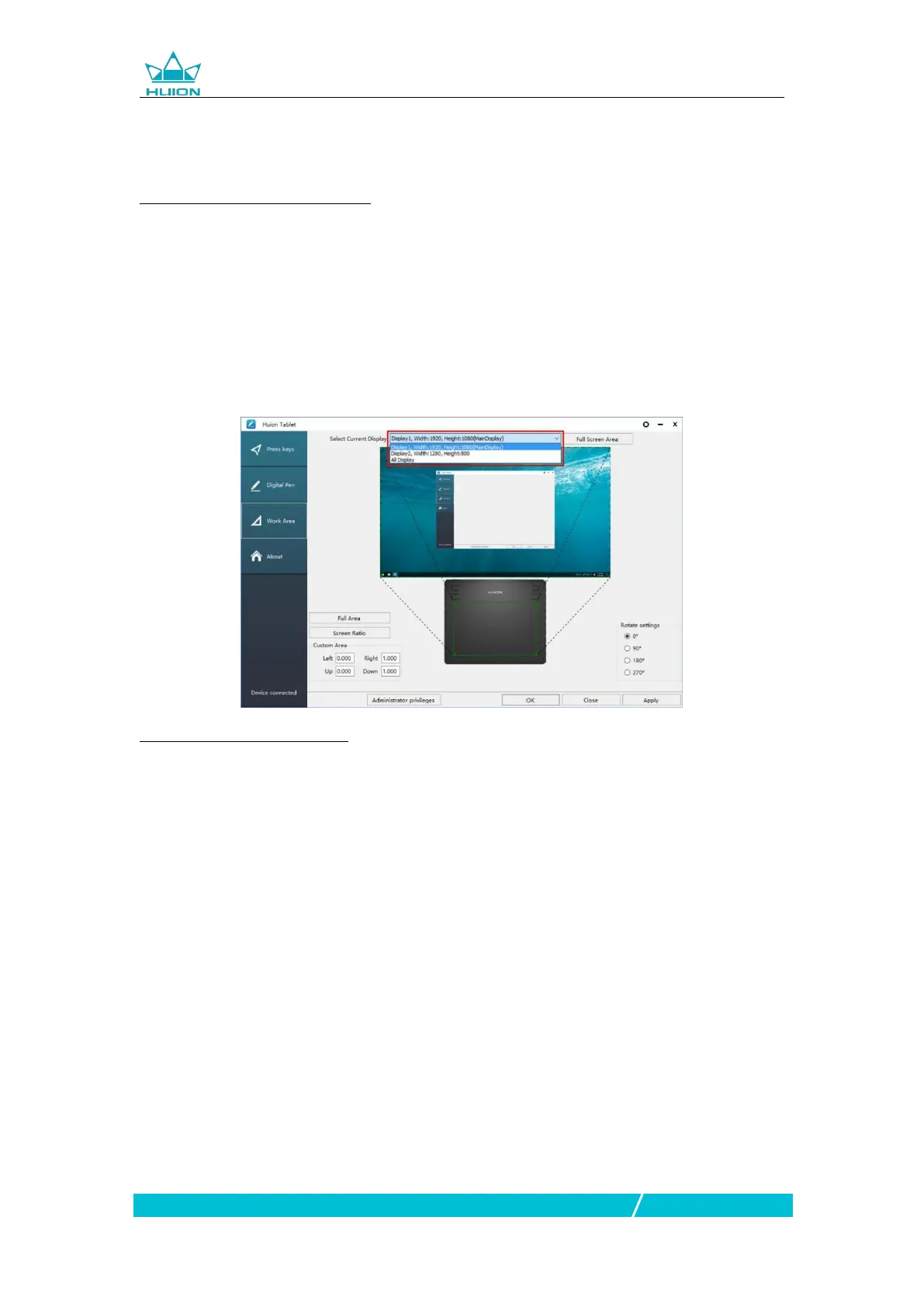 1. Full Area: the entire active area of the tablet. This is the default setting.