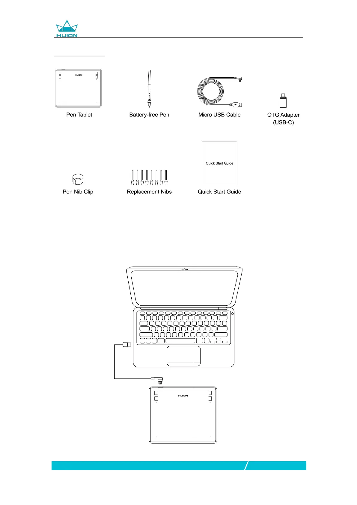 Huion HS64 - 1.2.2 Packing List; 1.3 Connecting to Computer