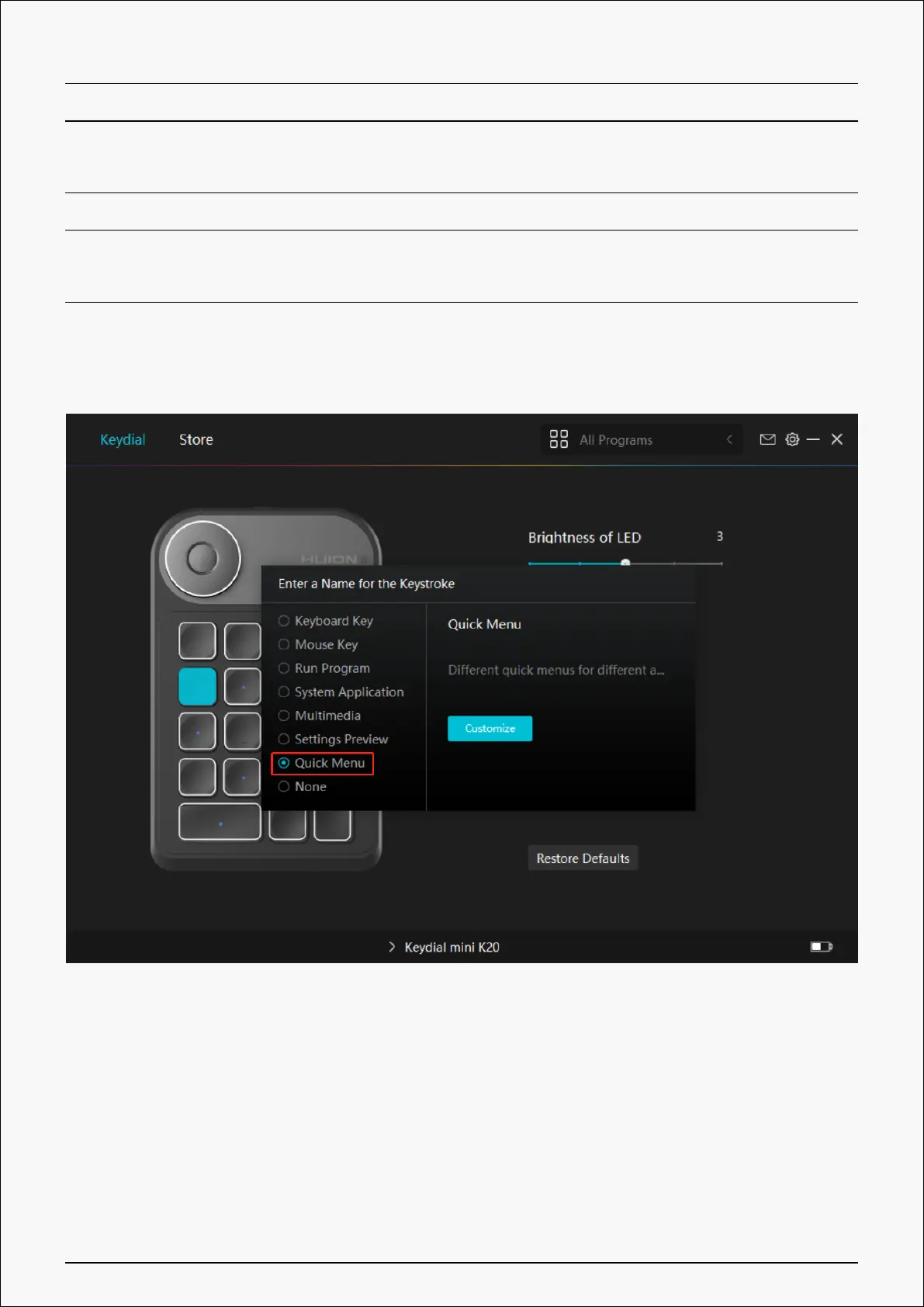 six buttons on the left, users can enter a name for it and set unique function for it. After that,