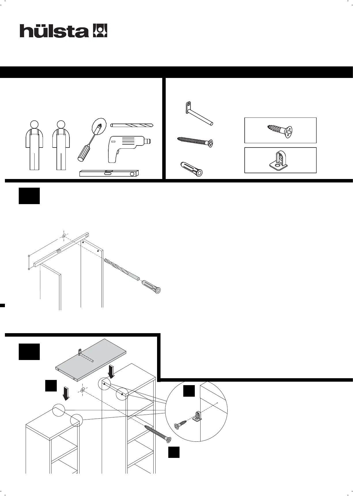 door hülsta meegeleverde standaard pluggen en passende schroeven. In geval van muren van