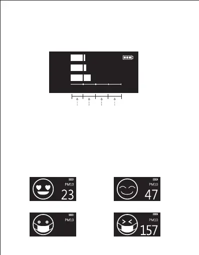 with 4 steps shows the air quality - good, moderate, poor