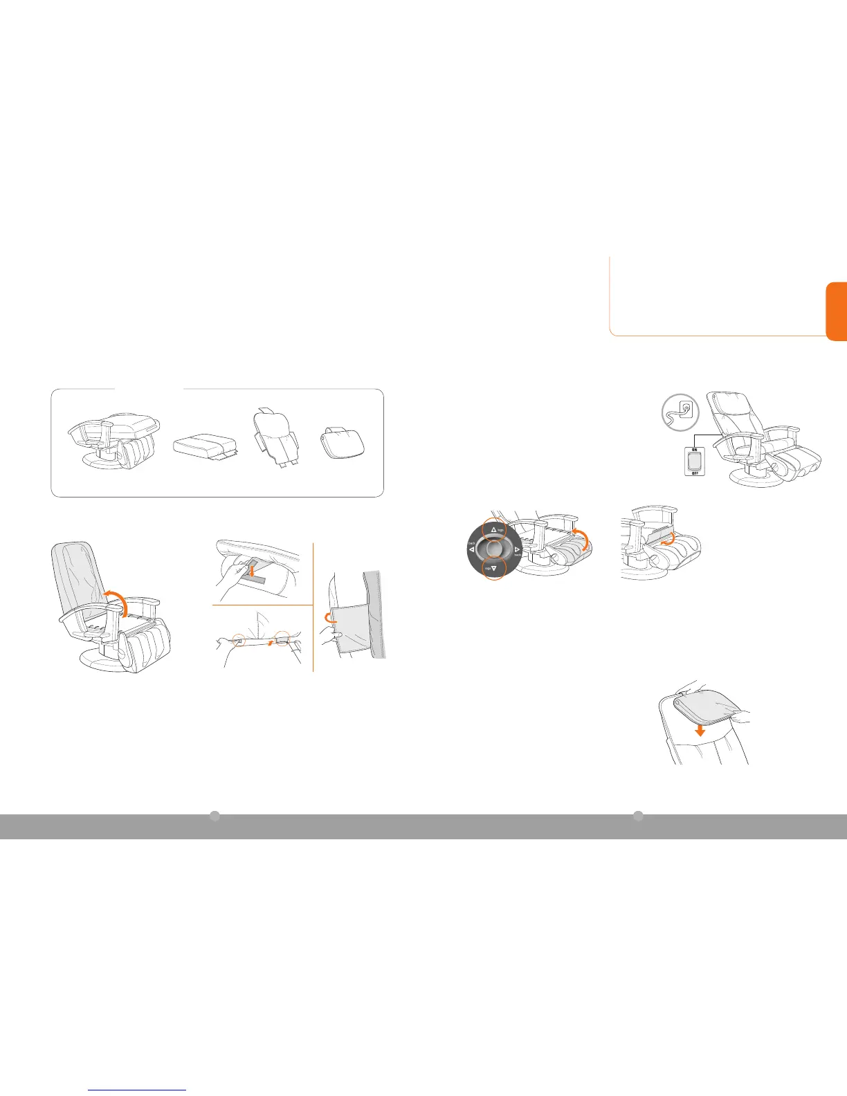 the top of the chair. Attach the head pillow to the flap