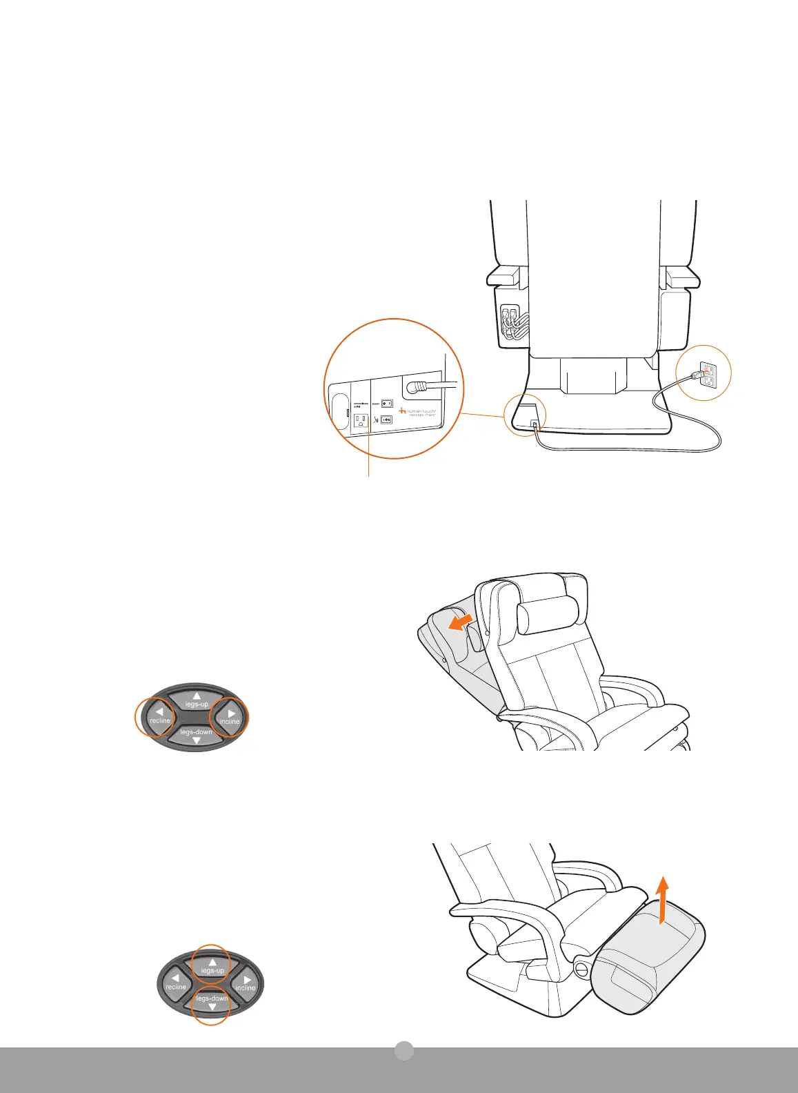 Cuando cambie el sentido del masaje del espaldar o de pies + pantorrillas, se produce una leve pausa