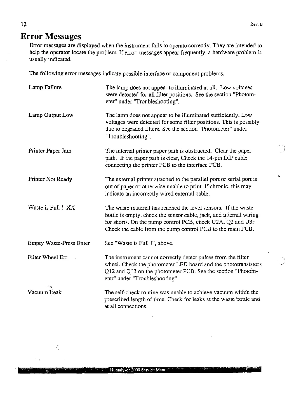 Human Humalyzer 2000 - Error Messages