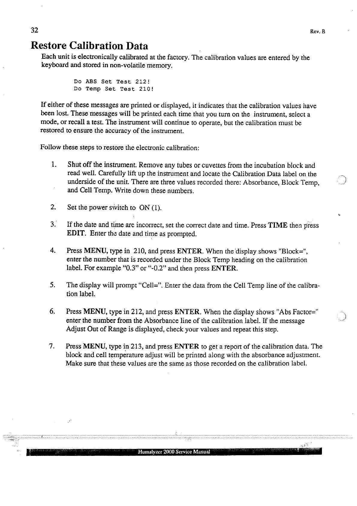 Human Humalyzer 2000 - Restore Calibration Data
