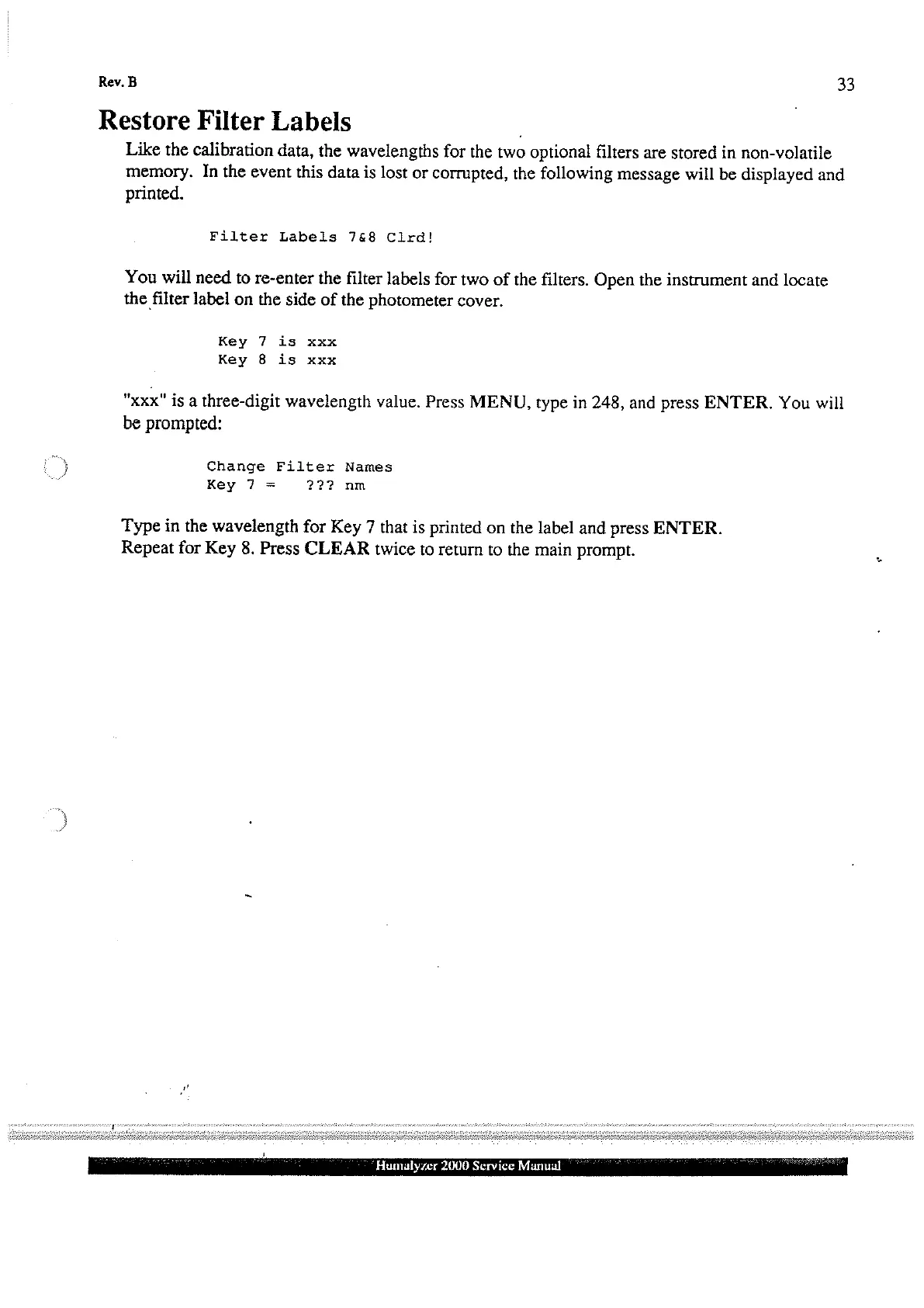 Human Humalyzer 2000 - Restore Filter Labels