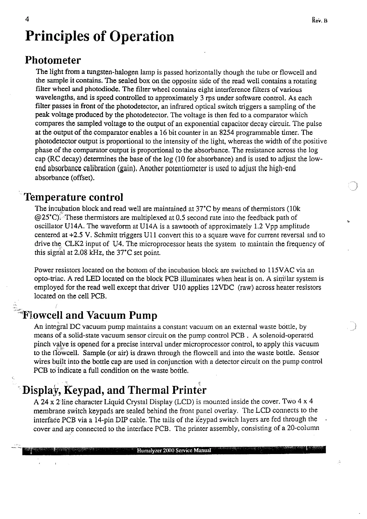 Human Humalyzer 2000 - Photometer; Temperature Contro; Flowcell and Vacuum Pump; Display, Keypad, and Thermal Printer