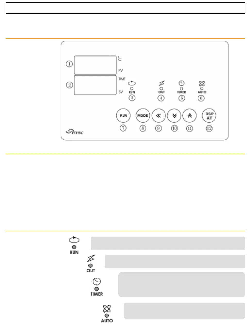⑩ Decease value key (▽)④ Displays the heater is operating (OUT)