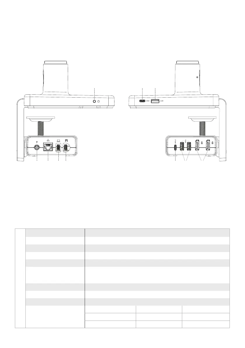 USB-C Upstream Port Connects full featured USB-C cable to laptop, Supports PD charging at 100W max.
