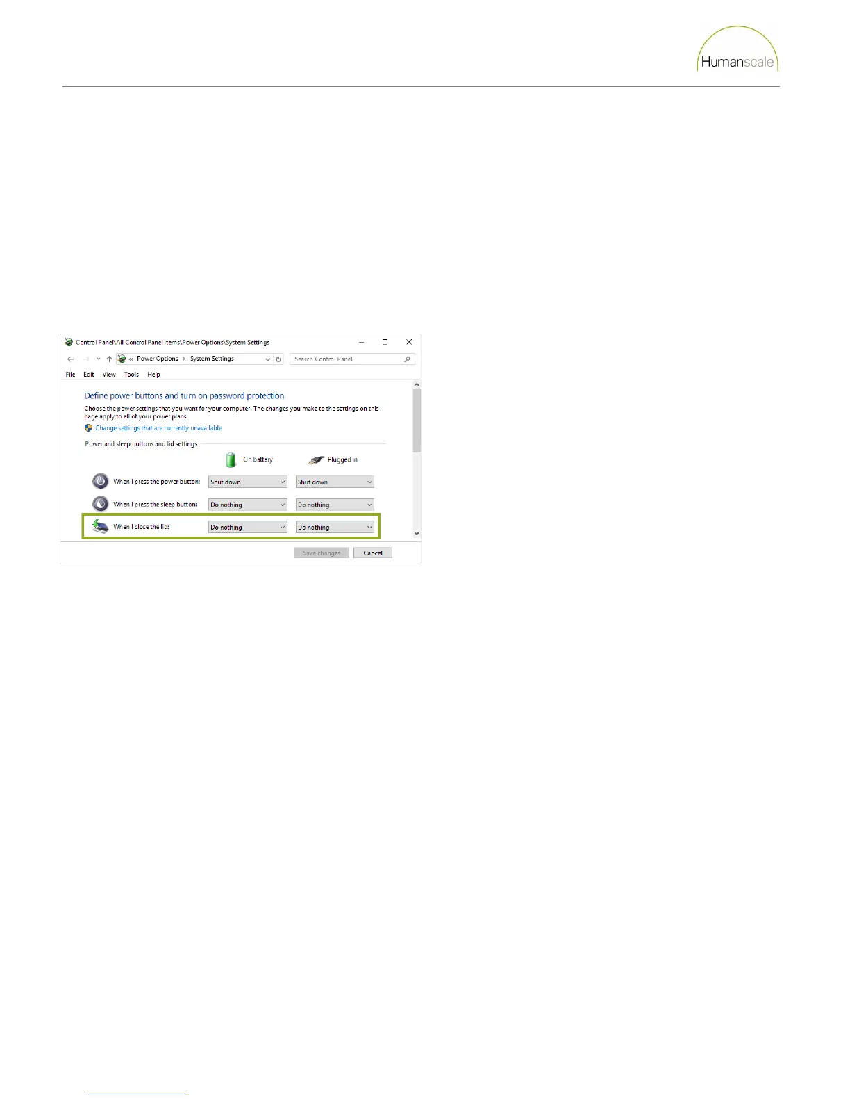 5. Select Do Nothing for the On Battery and Plugged In dropdown menus.