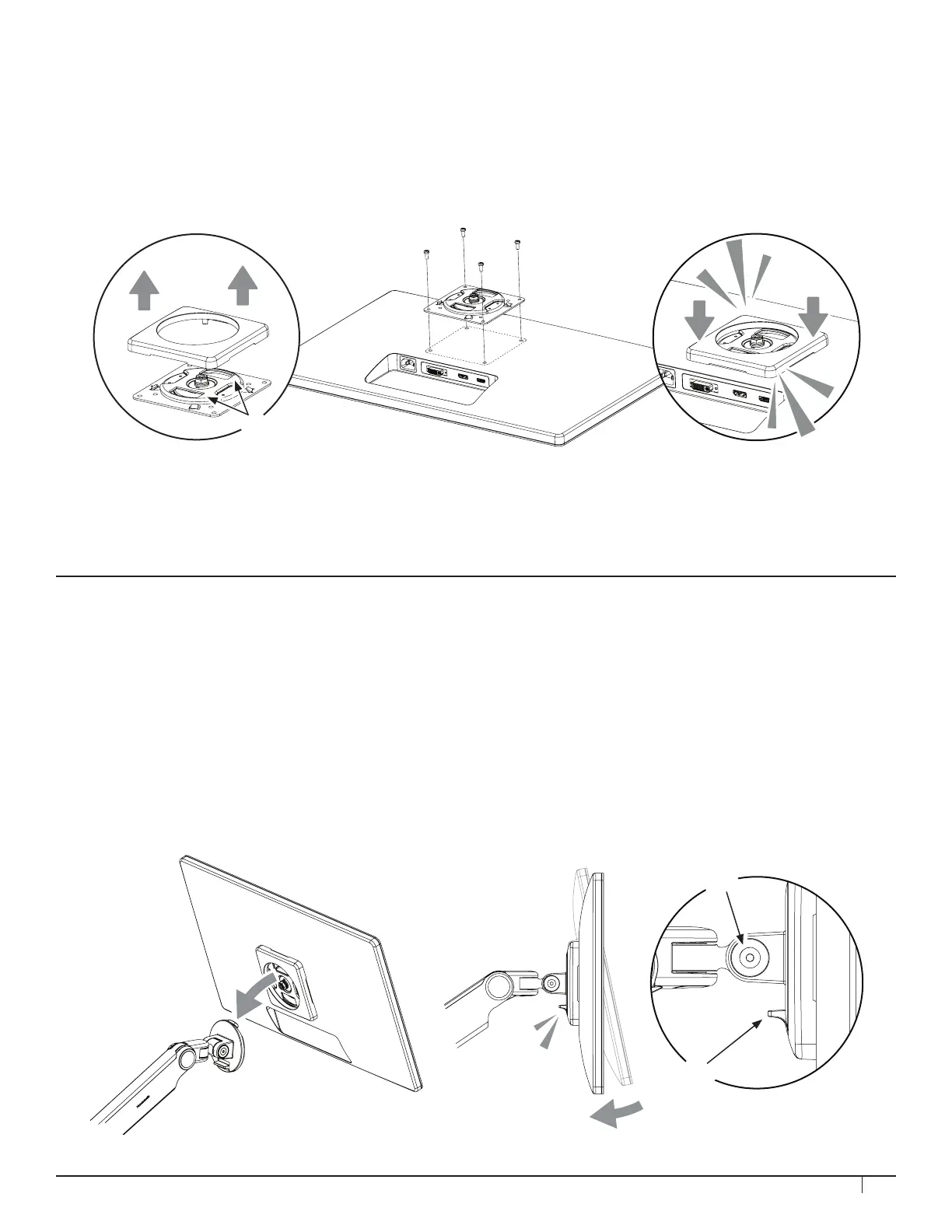 2. Placez la plaque VESA sur les trous de montage à l’arrière de l’écran en orientant