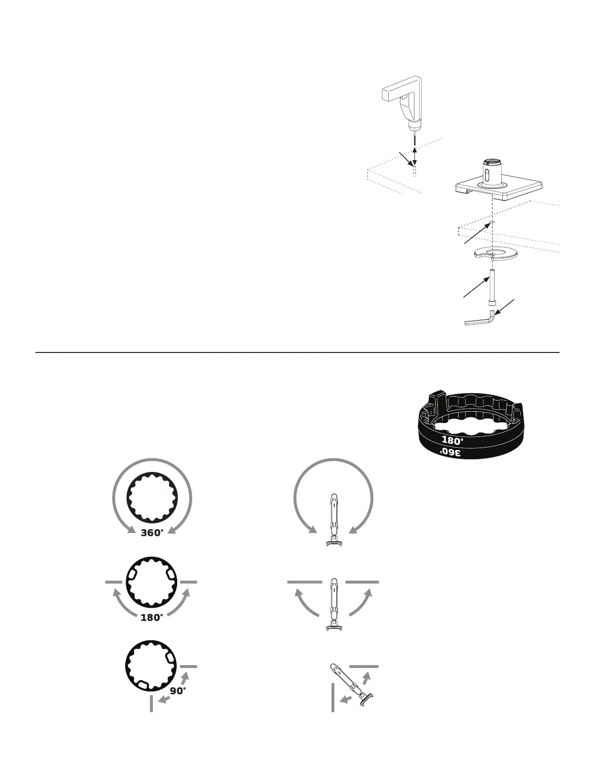 of the ring the arms can be set to rotate either 90°, 180°, or 360°. The marked