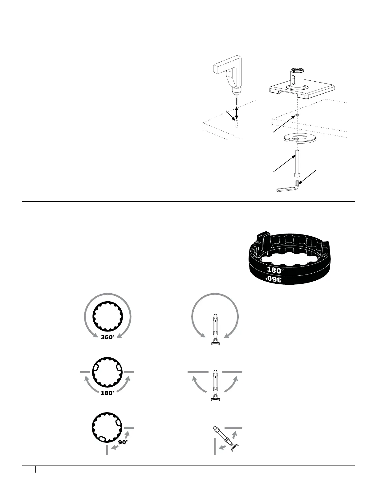of the ring the arms can be set to rotate either 90°, 180°, or 360°. The marked