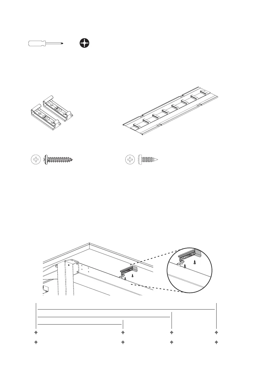 to the desired location on the underside of the work surface. Install the hooks with the arrows