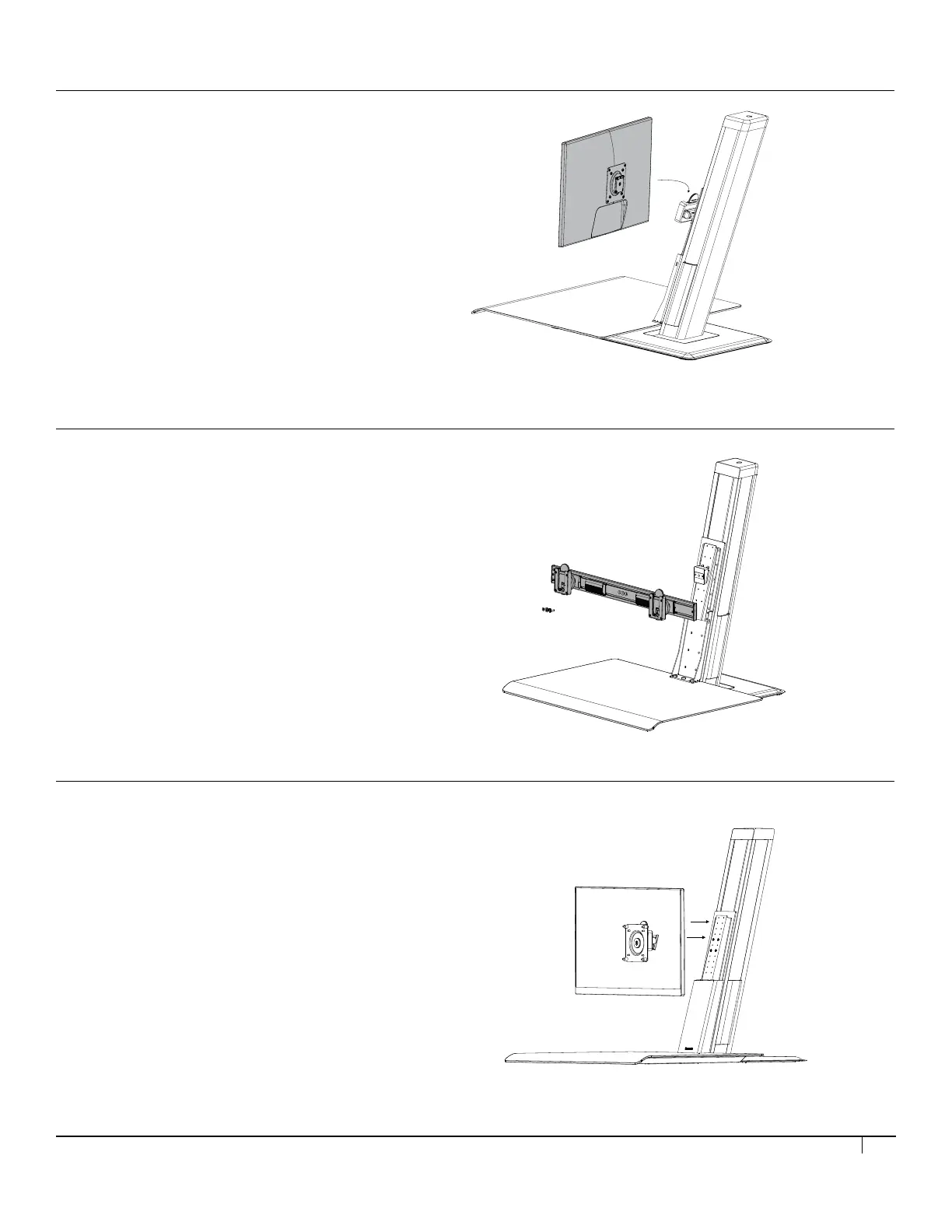 Attach the crossbar to the unit. Attach both monitors to the crossbar.