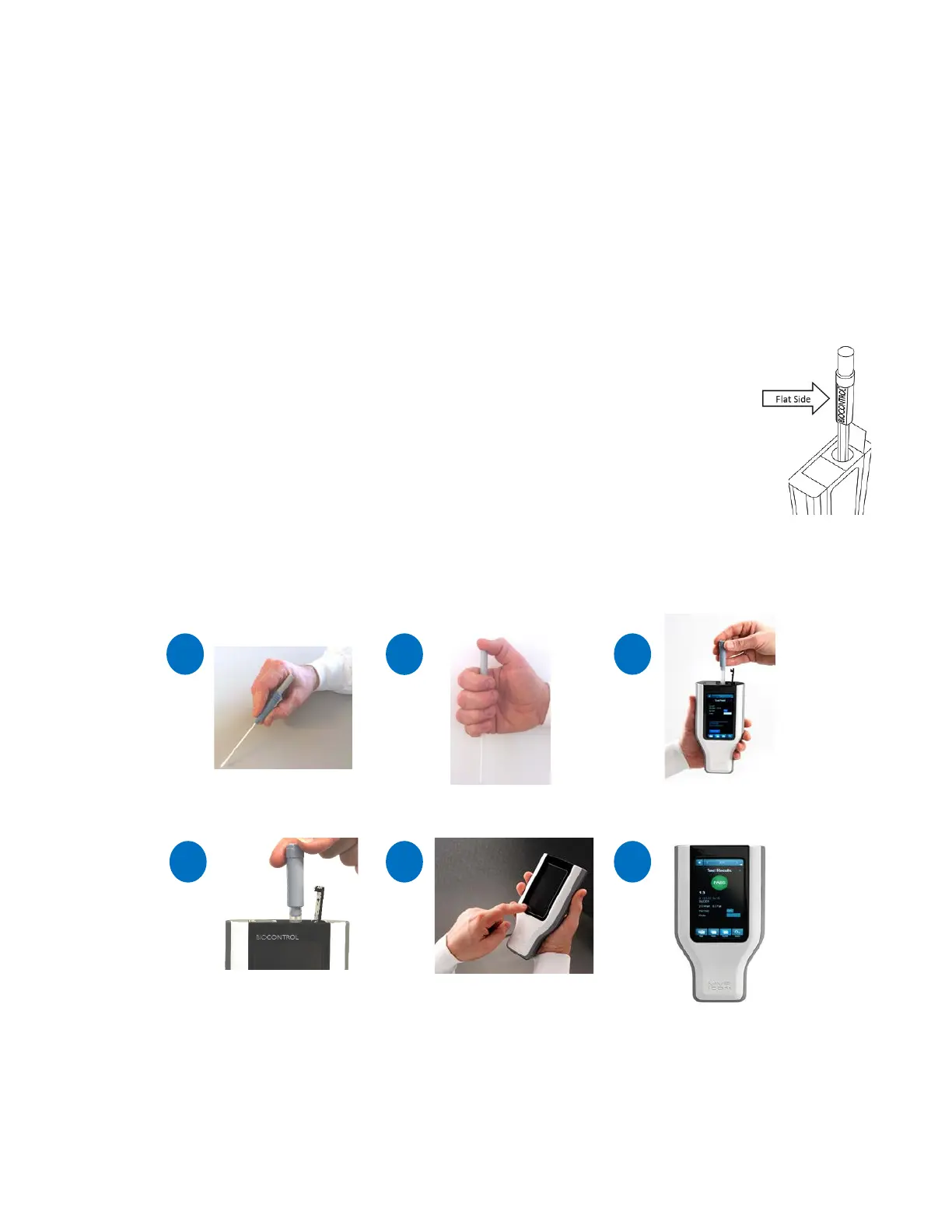 • Follow the directions in blue to swab the area and insert the sampling device.