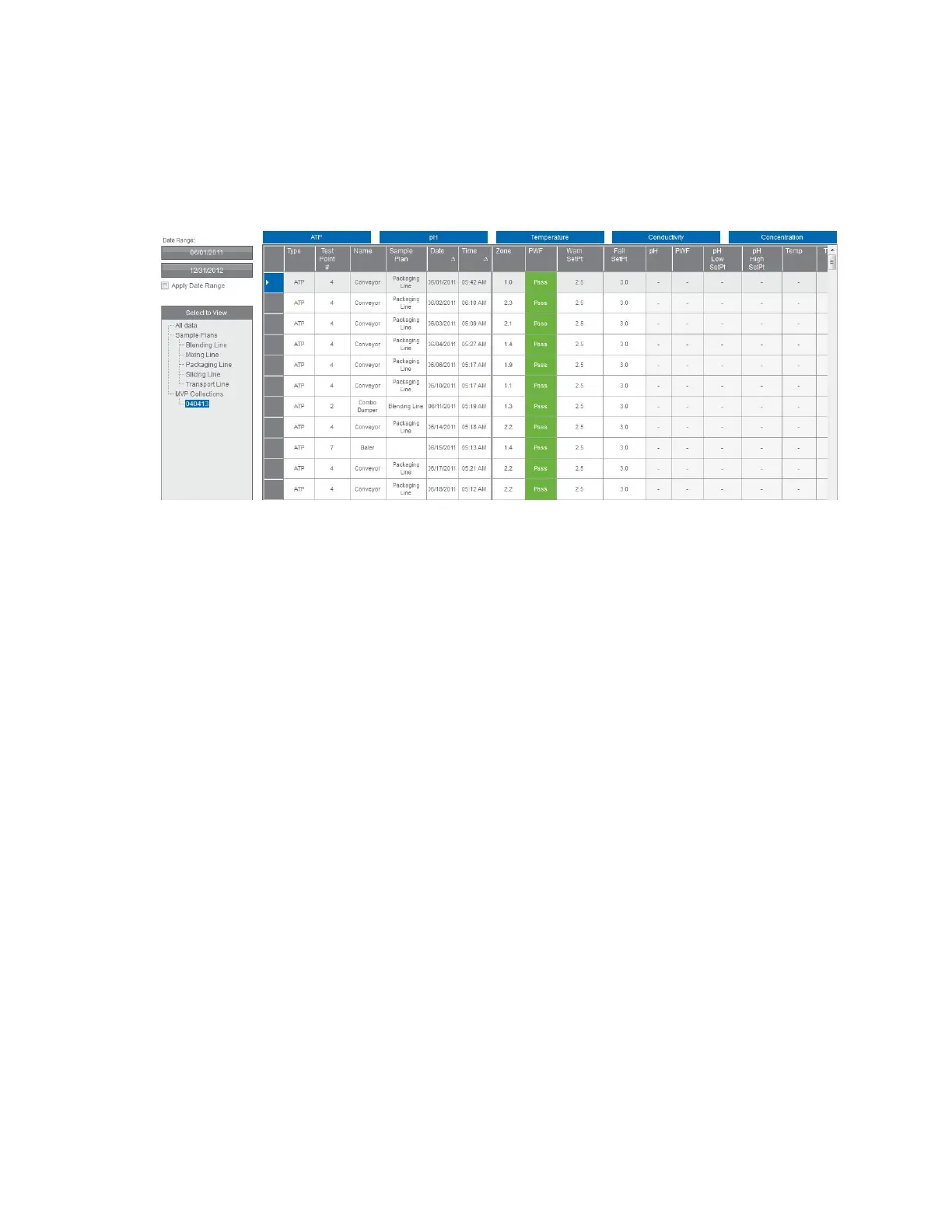 parameters for a particular test point together. Data for each parameter is sorted in the