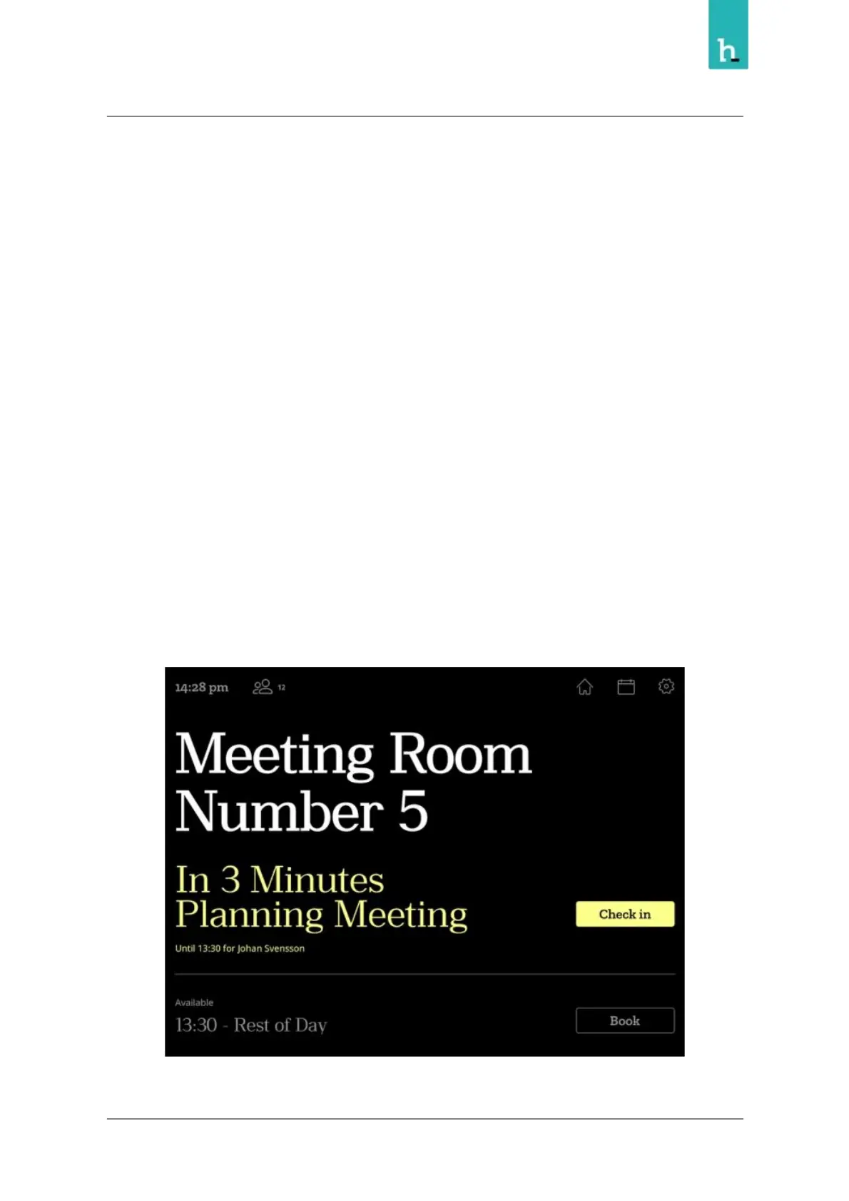 This function can be enabled and customized from the Humly Control Panel, if enabled, a check-in button