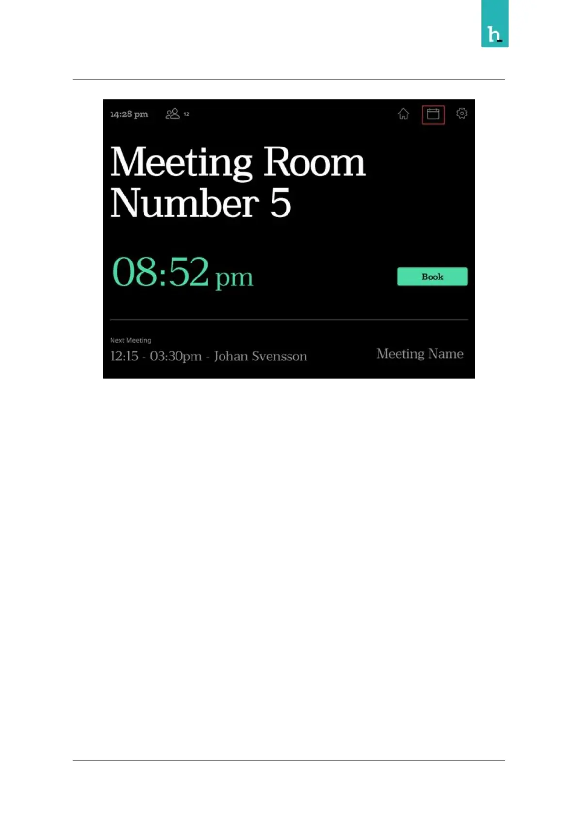 From the calendar view, you can see the room schedule, you can also book meeting by pressing Book
