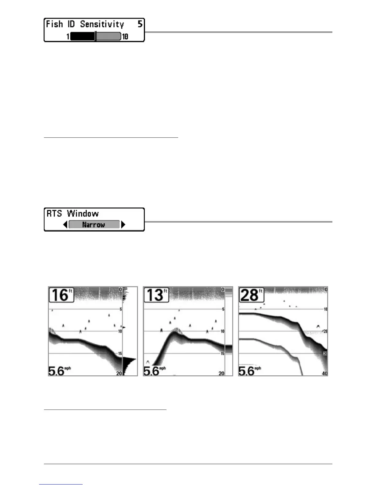 or Narrow, or turns it off in the Sonar View. The RTS® Window always updates at the