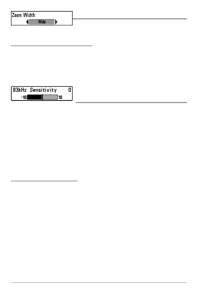 kHz Sensitivity will display fewer weak returns. The 83 kHz Sensitivity menu