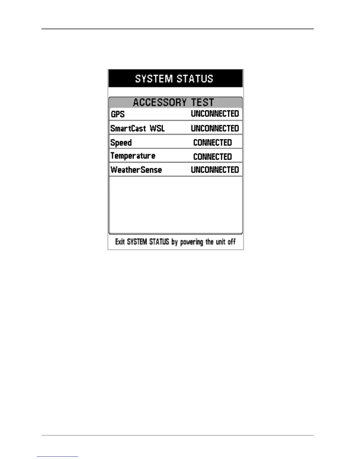System Status Accessory Test Screen