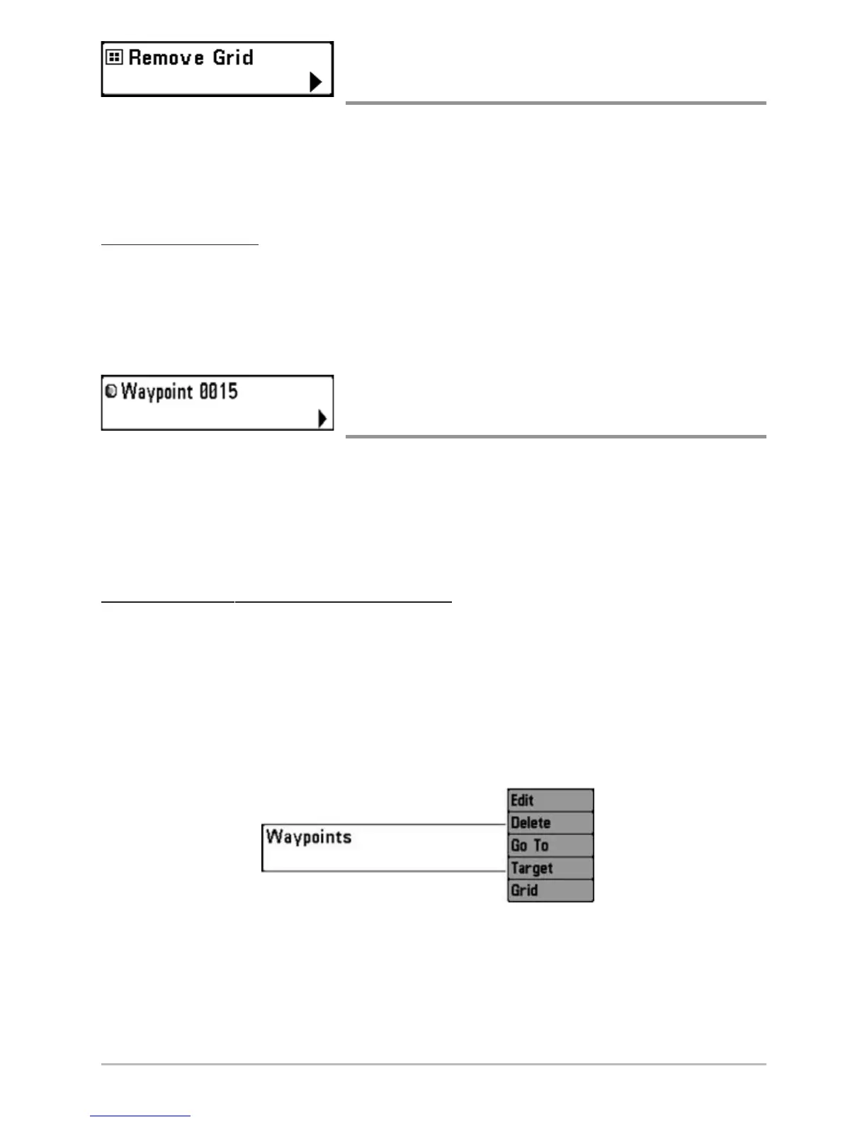 Remove Grid removes the waypoint grid from the display. This menu choice will