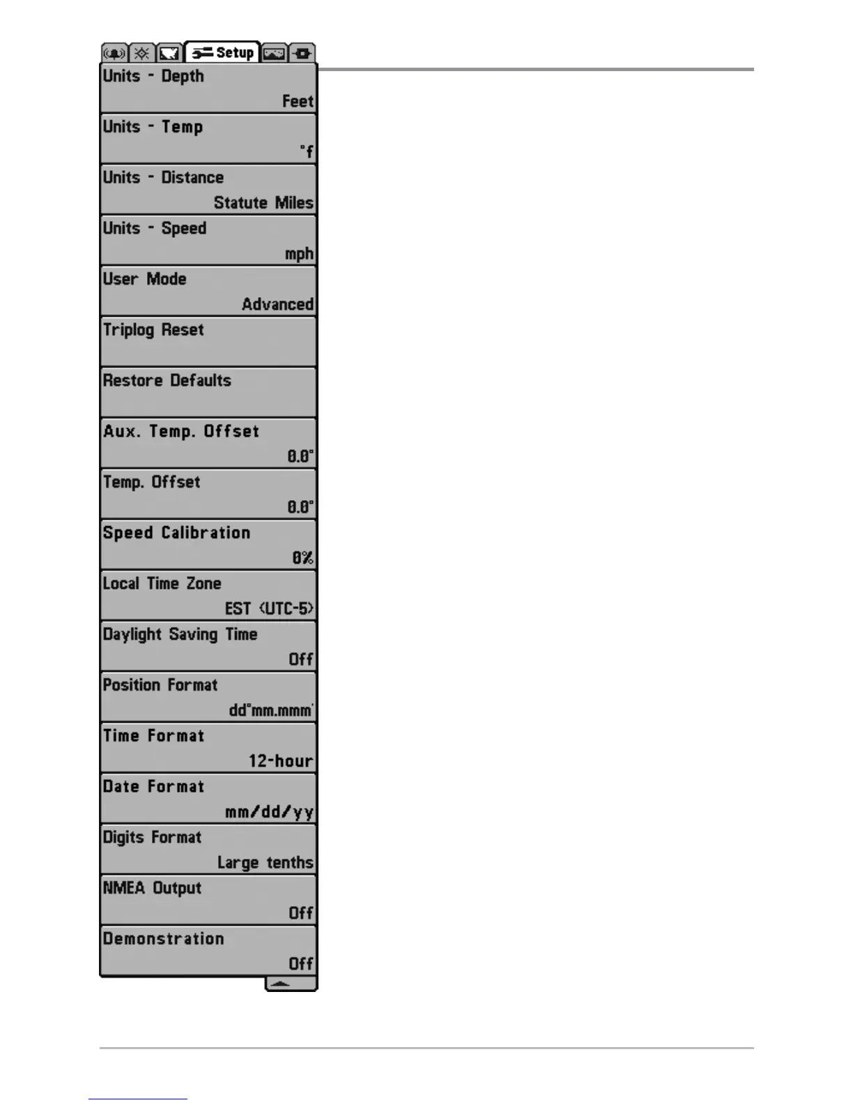 Setup Menu Tab