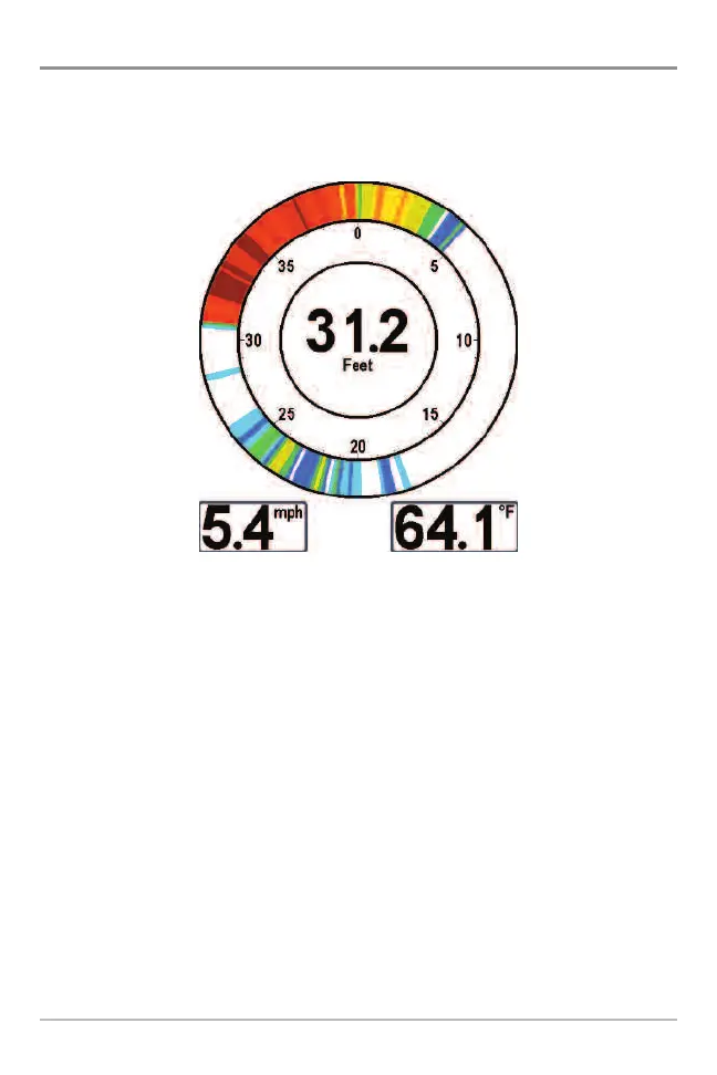 Circular Flasher View displays Real Time Sonar (RTS®) data in the traditional