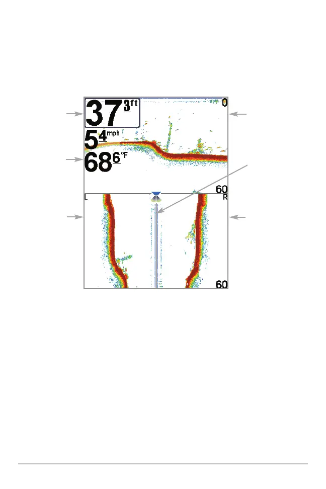 sonar beams. New information appears at the top, and scrolls down the display.