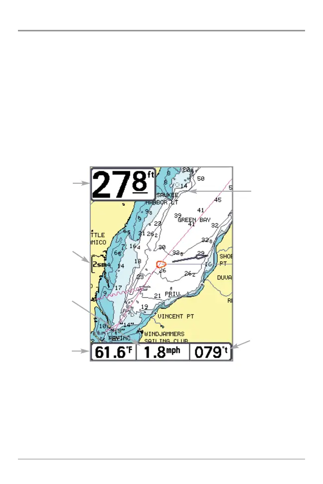 where the boat has been, along with saved tracks, waypoints, and the current
