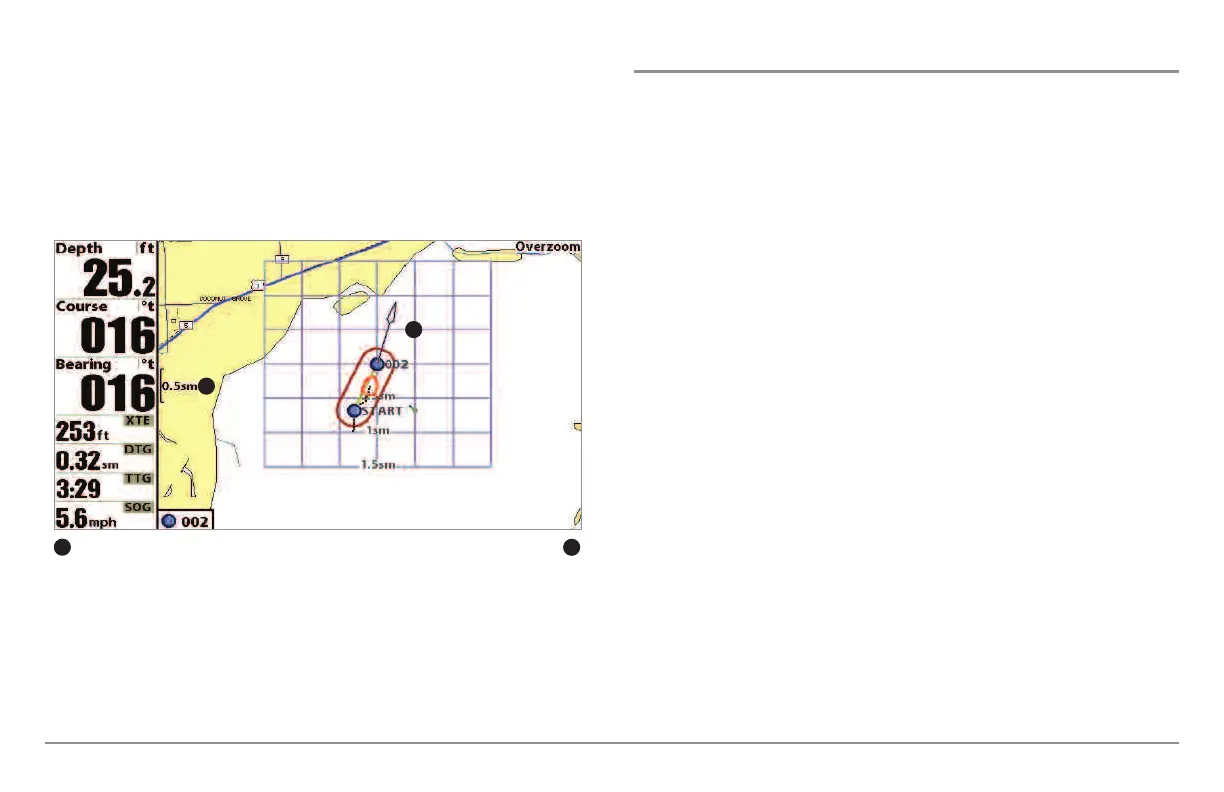 when trolling around a waypoint. The grid can be rotated to any desired heading
