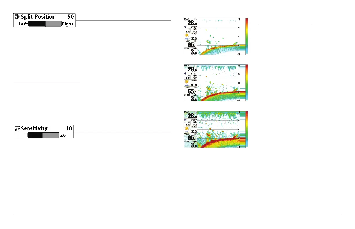 on the display. Increasing the sensitivity shows more sonar returns from small